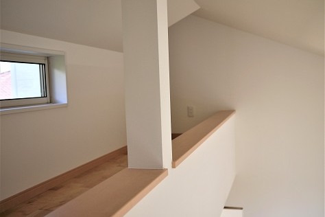 二世帯同居を始めるにあたって建て替えをされたお宅です。家族間で話し合いを重ねた結果、1階を親世帯、2階を子世帯に分け、玄関以外は別々に設けて独立性を保ち、それぞれのペースで生活しながらも自由に行き来できるプランにまとまりました。1階はバリアフリーでゆったりとしたスペース、2階は勾配天井を活かした開放感のある明るいスペースとなっています。