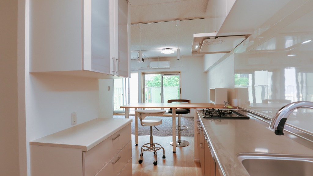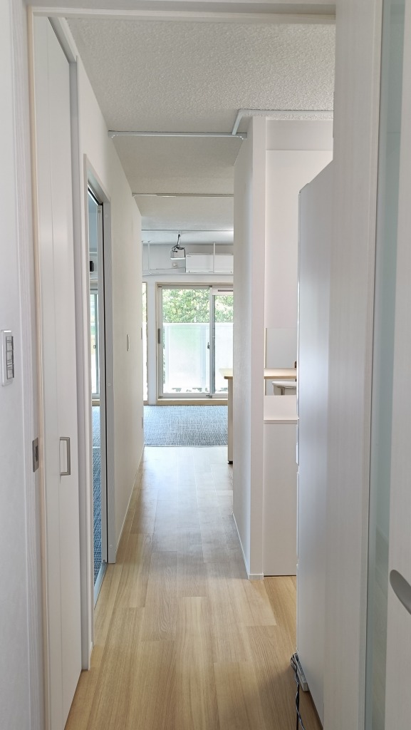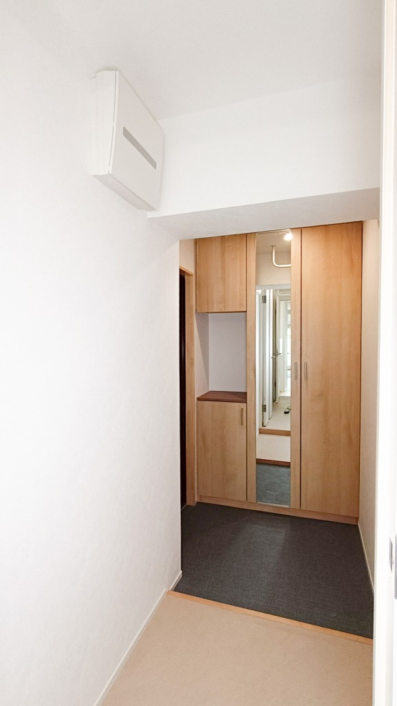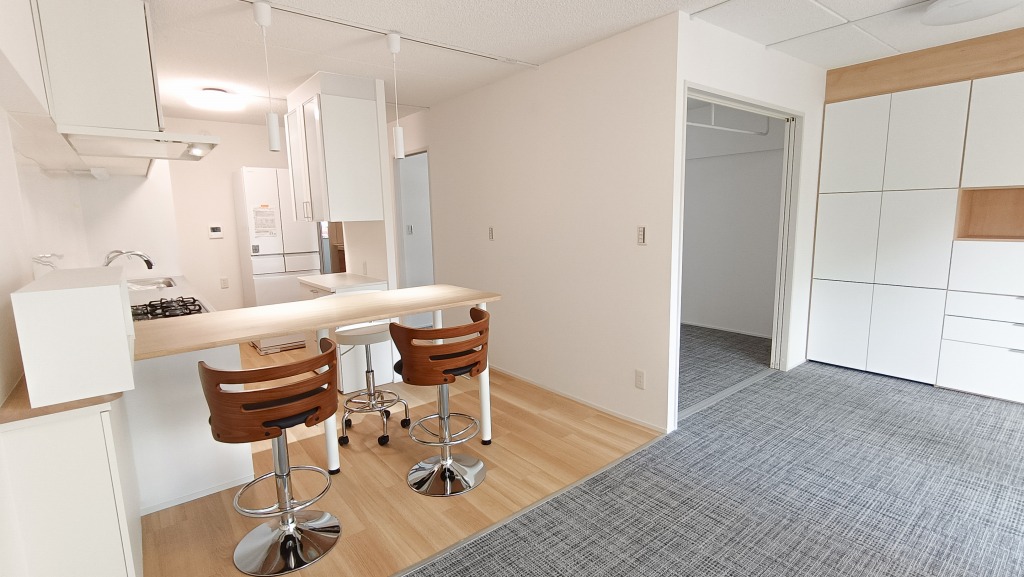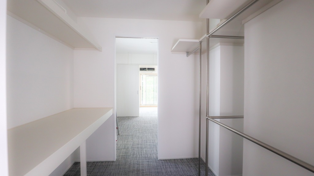 築51年のマンションを新規購入しフルリノベーション。和室や押入をなくし、両部屋使いのWICにすることで風通しを良くしました。