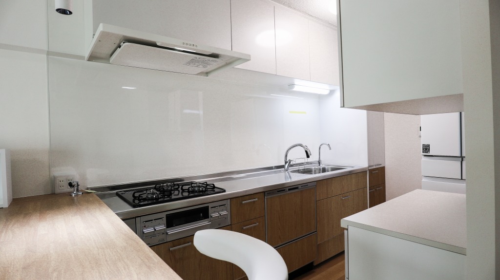 リビングにこだわりの造り付け収納を設置したことで部屋を広々使えるところもポイント。そのリビングと一体化したオープンキッチンが家族の団らんを生み出した素敵な空間が完成しました。